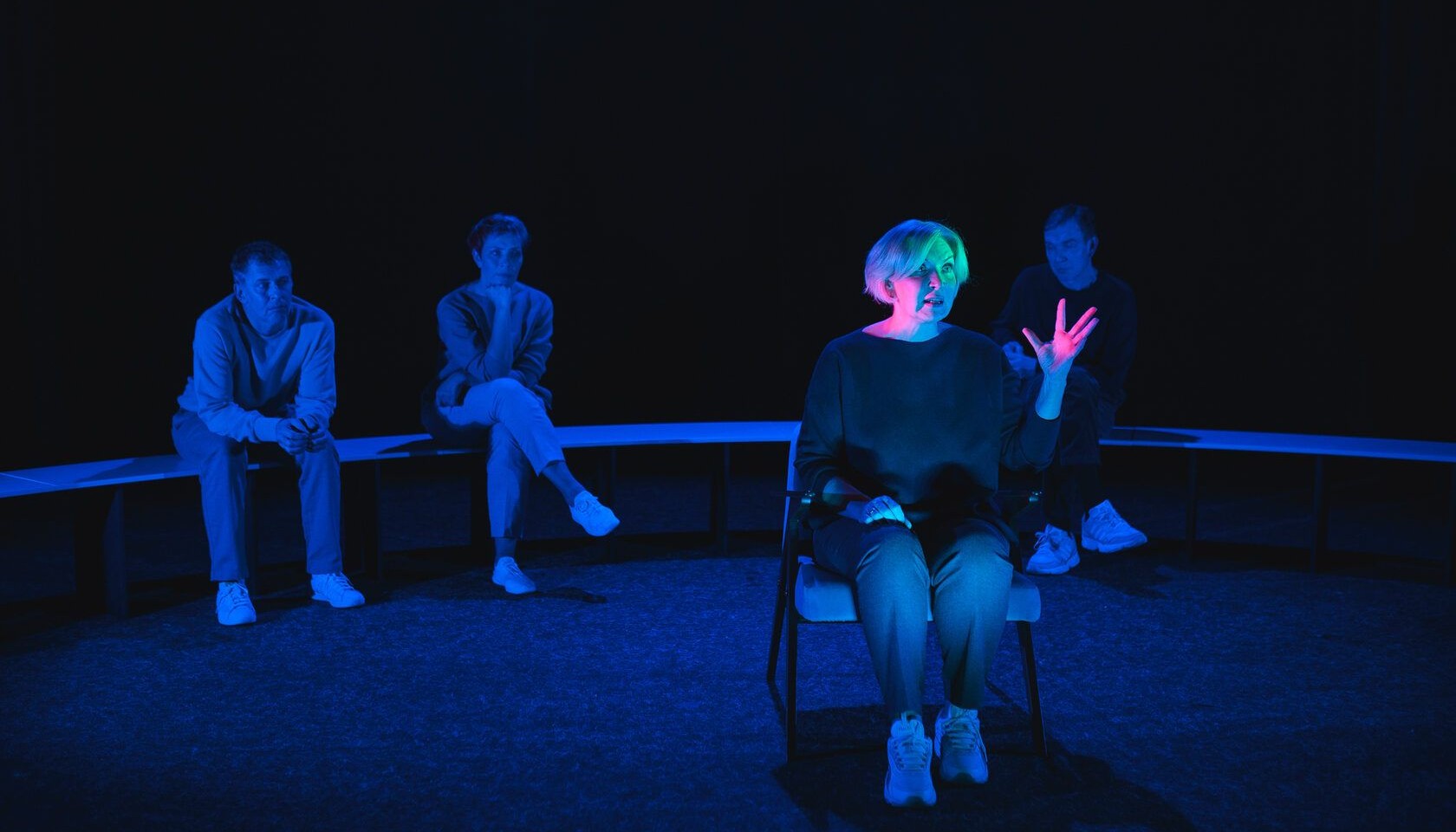 Основной отличительной чертой спектакля является способ её восприятия — через собственное воображение и голоса актёров-рассказчиков, размеренный ритм которых позволяет оживить пьесу настолько красочно и ярко, что каждый сможет представить себе сцены из семейной жизни пожилых пар и взглянуть на собственную жизнь со стороны.