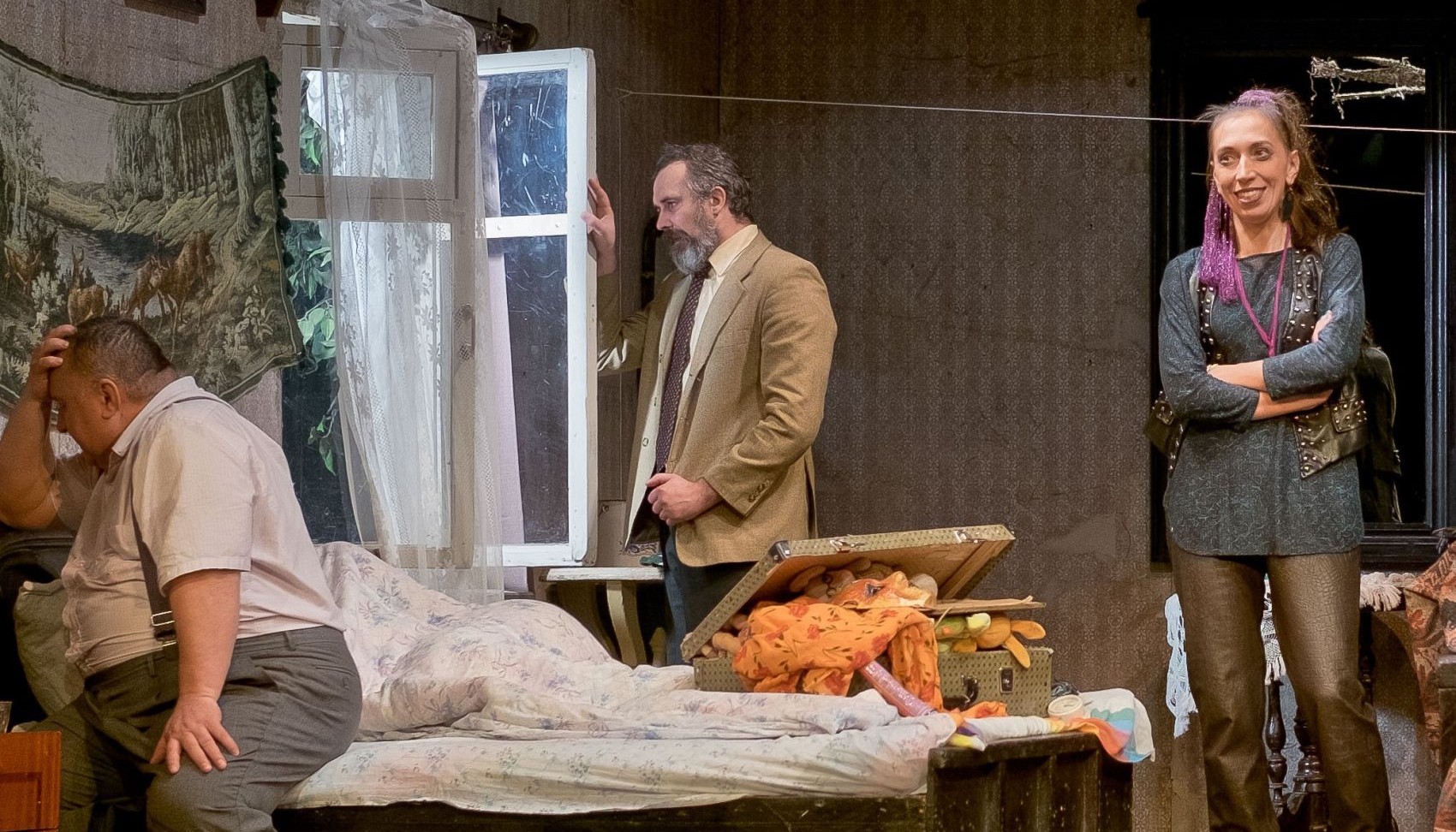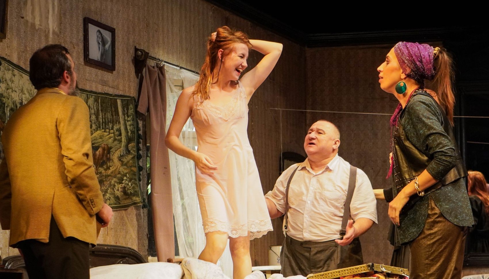 Разница только в том, что количество «людей театра» на один «квадратный метр» пьесы явно превышает все допустимые нормы, а её действие разворачивается ночью в общежитии накануне репетиции!